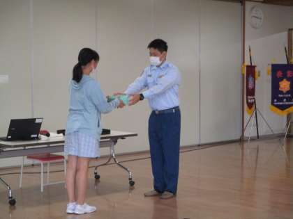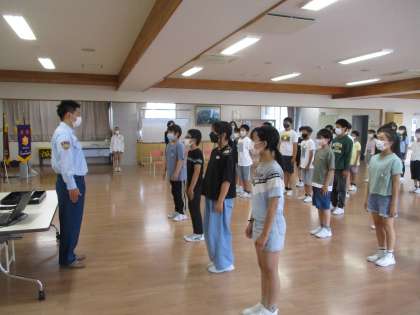富山消防署の方が来校され、6年生に少年消防クラブ員としてのバッジ授与が行われました。誓いの言葉を全員で暗唱し、クラブ員としての自覚を高めました。