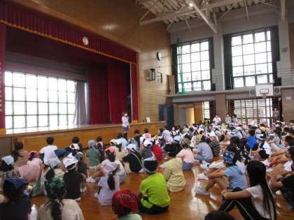 縦割り班発足式があり、自己紹介をしました。明後日からの清掃や、木曜日の縦割りふれあい活動で、年間を通して共に活動するグループです。助け合ったり、楽しい時間を共に過ごしたりしながら、西田地方の縦のつながりを深めてほしいと思います。