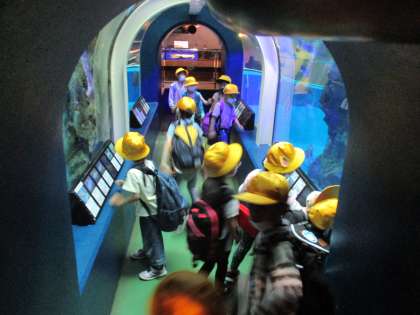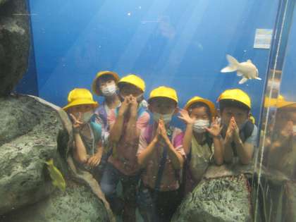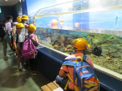魚津水族館へ行ってきました。公共の場でのマナーを守りながら、グループで館内を見学しました。