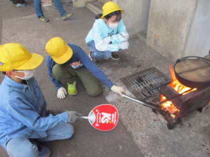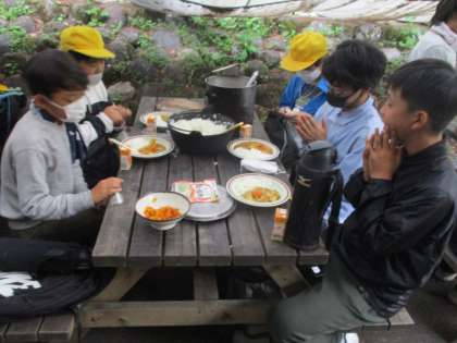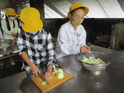 役割を分担してカレーを作りました。初めて作ったカレーは世界一美味しい味にできあがったようです。