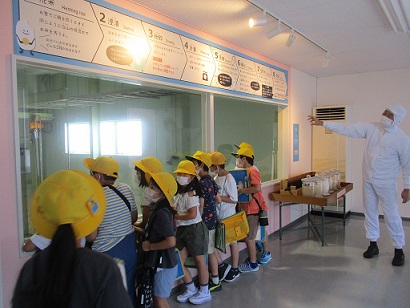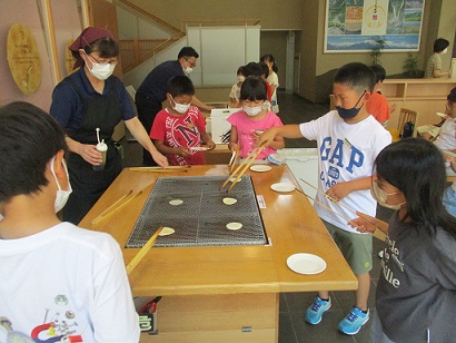 米菓工場では、いろいろな種類のせんべいを作っている様子を見ることができました。手焼きせんべい体験をして、できたてのせんべいや富山県産米のおいしさを再確認しました。