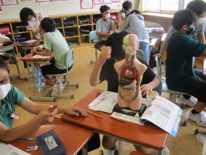 体のつくりについて模型を用いて確認し、臓器の役割を学びました。