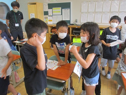 英語でのジャンケンの仕方を学習しました。子供たちは、友達と楽しんで交流して盛り上がっていました。
