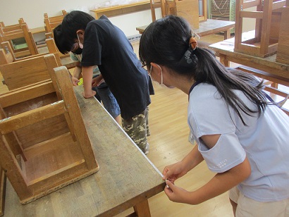 2年生で学習したことを基に、長いものの長さについて知識を広げています。ペアやグループ活動では、長さの見当を付けてからいろいろな物の長さを巻き尺で測定しました。