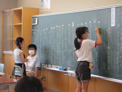 種の植え方や肥料の作り方、土の作り方等、自分たちが調べてきたことを伝え合い、学級としてどのような農園にしていくのか話し合いました。個人で調べてきたことが重なり、より適切な農園づくりの方法をみんなで決めることができました。