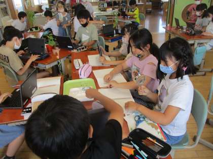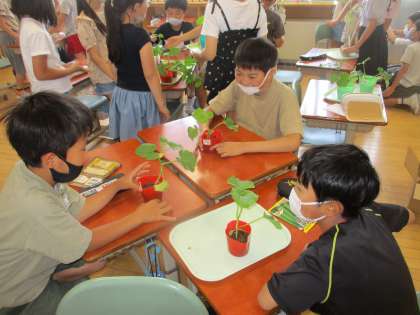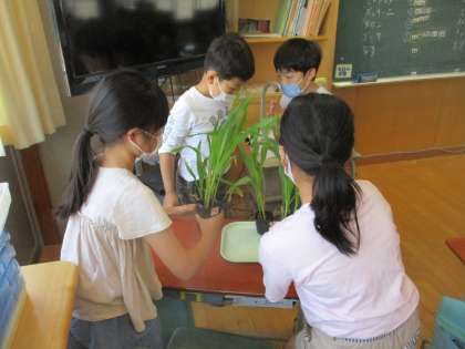 自分で育てることを決めた植物の苗を観察し、どのように植え、育てていくのかよいかパソコンや本で調べました。
