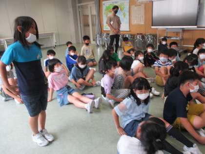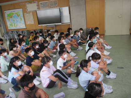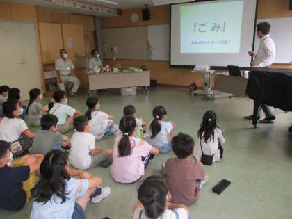講師の方をお招きし「3R推進スクール」を開催しました。まず、ごみの処理の仕方や問題、3R(リデュース、リユース、リサイクル)の大切さ等について講義を受け、その後、ごみ収集車を見学したり、リサイクルして生まれる製品を見せてもらいました。子供たちは、ごみの問題に対しての認識を深めるとともに、ごみを少なくするために3Rに取り組むことの重要性を理解することができました。