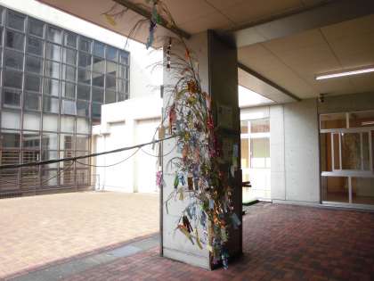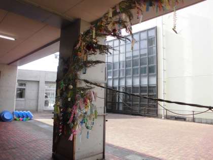 全校の子供たちが書いた短冊や色とりどりの飾りがついた竹を、中庭に飾りました。竹はPTAのおはなしゆうびんやさんの方が準備してくださいました。
