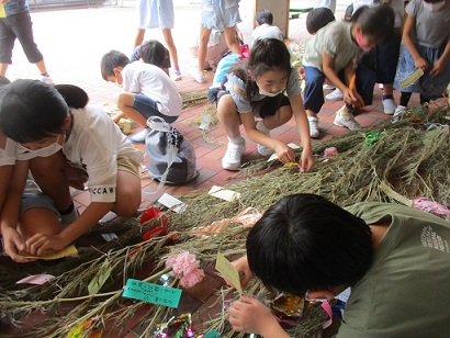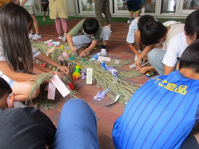 7月7日は七夕。「叶うといいな」という思いを込めて、願いごとを書いた短冊をみんなで飾りました。