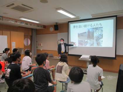 総合の学習で、ゲストティーチャーを招き、将来の夢について講義を受けました。県内で情報系を中心に活動しておられる方から、夢をもつことの大切さについて話を聞きました。講義を受け、うなずいたり、目を輝かせたりしていた子供たち。自分の将来について考えを深めることができたようです。
