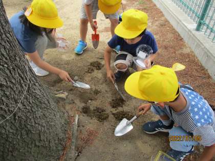 生活科「生きものをとりにいこう」の学習で、校庭へ虫をさがしに行きました。校庭には、お目当てのダンゴムシがたくさんいました。