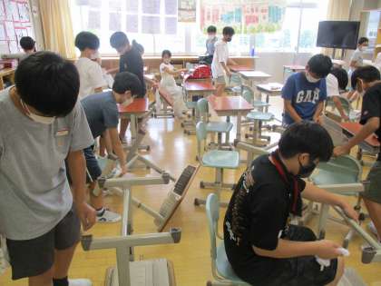 自分の使っている椅子や机、ロッカーなどの清掃をしました。1学期の感謝の気持ちをこめてきれいにしました。