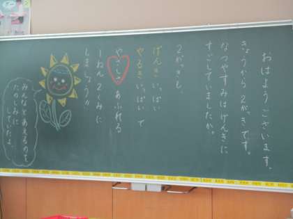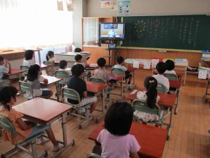 Meetによる式が始まると、一斉に姿勢を正し、校長先生の話を真剣な様子で聞いていました。今日から2学期です。みんなで助け合い、活発な学校生活を送りたいと思います。