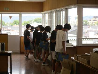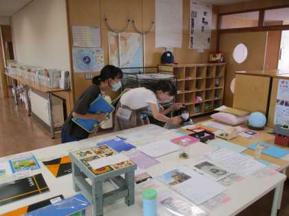 夏休みに取り組んだ自由研究を見合いました。同じフロアの学年の作品も見て回り、友達の頑張りや面白い視点などを探しました。