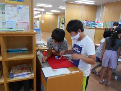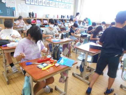 2学期が始まり、最初の1週間は、1学期に学習した手縫いで、自分の好きな作品を作りました。好きな色のフェルトを使って、一生懸命に挑戦していました。