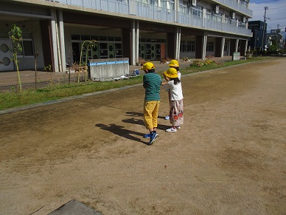 かげつなぎをして、かげについて気付いたことや疑問に思ったことを伝え合いました。子供たちは、太陽とかげの向きの関係や時刻によってかげの様子が違うことなどたくさんの意見を出し合っていました。