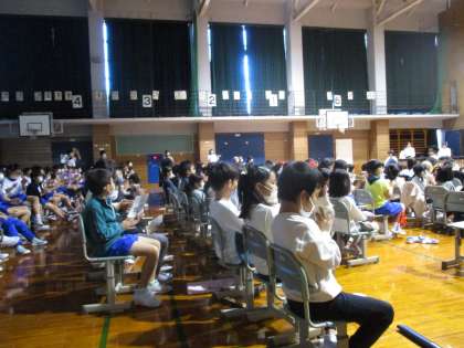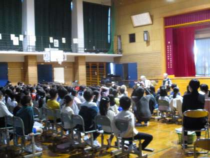 校内発表会では、自分たちの出番だけでなく、他学年の発表も熱心に見ていました。また、発表会の後には地域の方によるアコーディオン演奏披露があり、すてきな音色に耳を傾けていました。