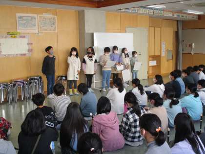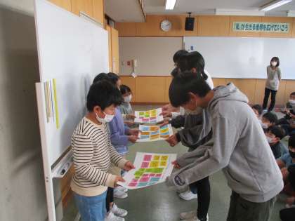 3年生から校内発表会の手紙のお返しをもらいました。自分たちの演奏や演技を楽しんでくれた様子が伝わり、6年生も笑顔いっぱいでした。