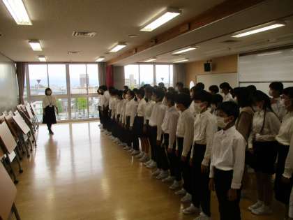 発表に向けて声出しをしました。きれいな歌声を届けられるようにパート毎の音程を確認しました。