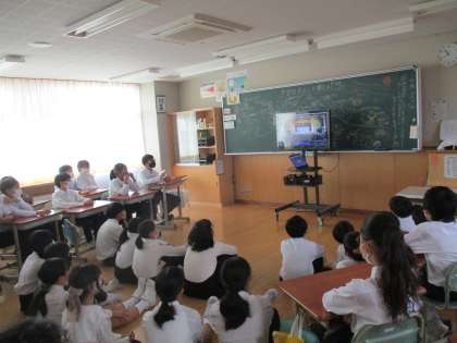 校内発表会の映像を見ながら本番に向けてイメージトレーニングをしました。変更点や合奏のリズムを確認し、学年で意気込みを語りました。