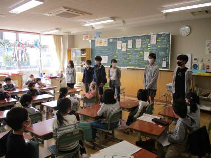 国語の学習「みんなで楽しく過ごすために」の学習で、1年生との交流会について、目的や条件に応じて話し合いをしました。そして、1年生と仲良くできること、1年生に喜んで遊んでもらえる内容にすることを中心に計画を立て、交流会に臨みました。
