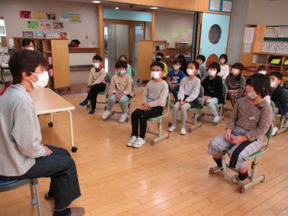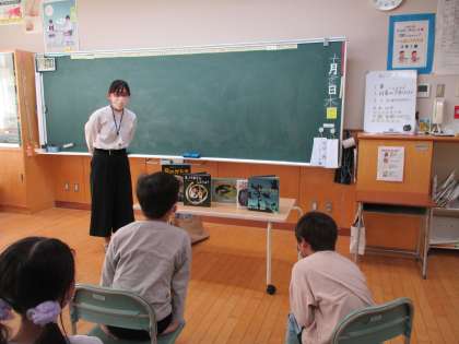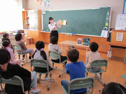 ストーリーテリングでは、図書を使わず、お話だけを楽しみました。最後まで集中して静かに聞くことができました。ブックトークでは、秋になって夜が長くなったことから、暗闇を楽しめる図書を紹介してくださいました。