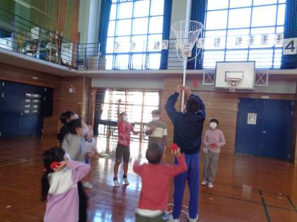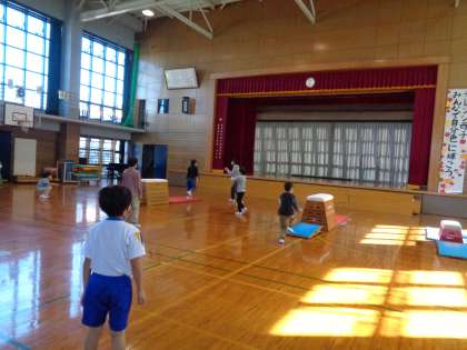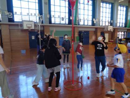 運動委員会のイベント「スポーツスタンプラリー」がありました。縦割り班で、いろいろな運動にチャレンジしました。玉入れや跳び箱、ストラックアウト、風船バレー等様々なゲームがあり、子供たちは楽しむことができたようです。