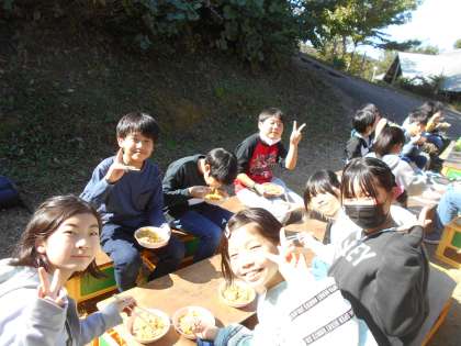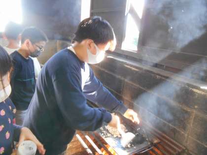 2日目の最後には野外炊飯を行いました。自分達で薪から火をおこしてやきそばをつくりました。班員全員の力を合わせてつくった焼きそばを子供たちは美味しそうに食べていました。