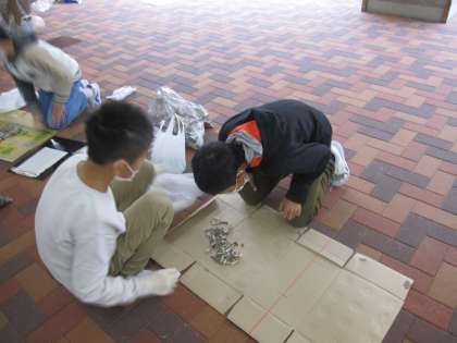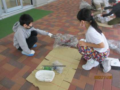 ゴミ拾い大会を終え、分別をして集計をしました。チームの仲間や保護者と協力して各チーム多くのゴミを拾うことができました。