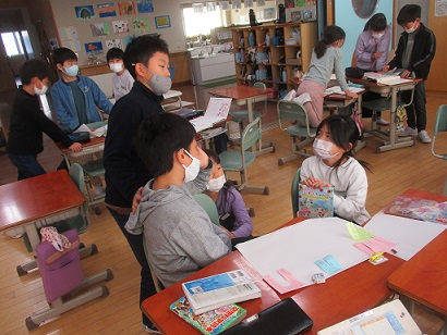 1年生が本を好きになってくれるように、読み聞かせをするという目的をもち、グループでの話し合いをしました。子供たちは、自分の役割を意識して、意見と理由をはっきりと伝えながら話し合いを進めていました。
