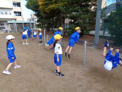〜1年生〜 体育科の学習「鉄棒・ゴム跳び」