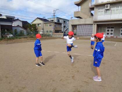 今週から晴れた日は「鉄棒・ゴム跳び」、雨の日は「リズムダンス」の学習が始まりました。初日は晴天。鉄棒ではカードを使ったり、友達と技を紹介し合ったりしながら、いろいろなぶら下がり方や回り方に挑戦しました。ゴム跳びでは、足首の高さから始まり、少しずつ高くなっていくゴムをどうやって跳び越えようか、一生懸命に取り組んでいました。