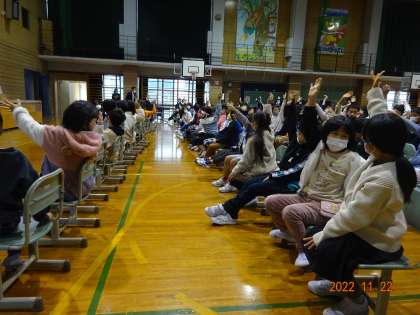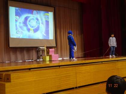 今年の学校保健委員会のテーマは「ストップ!視力低下」です。委員会のみなさんが分かりやすい劇で発表してくれました。発表後の振り返りでは、「視力が下がらないように、ゲームの時間を減らしたいです」「姿勢が悪いと、視力低下につながると知りました」普段の生活を見直すきっかけになりました。