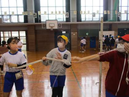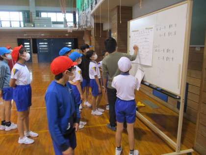 体育の学習で、ビーチバレーボールの最終戦を行いました。リーグ戦の結果をみながら、今までの対戦を振り返りました。片付けも友達と協力して最後までしっかりと取り組みました。