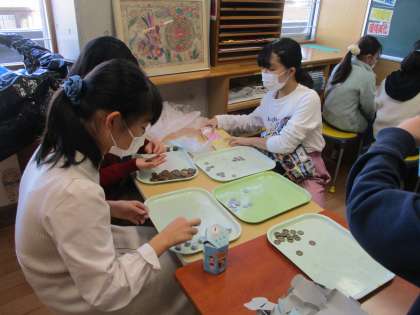 運営委員会では、今年も共同募金の活動を行いました。募金を金種で分けて、集計をしています。西っ子みんなの気持ちが詰まった募金を大切にしていこうとがんばっています。