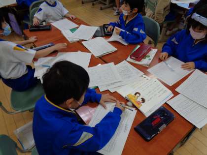 友達の「今一番楽しいこと」について聞いたことをグループで発表し合いました。それを聞いてお互いに感想をもちました。