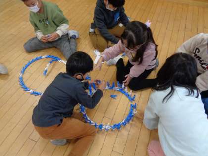 洗濯ばさみを使って、創作活動をしました。友達と集まって作ったり、一人で思いのまま作ったり、自由に創作活動を楽しみました。