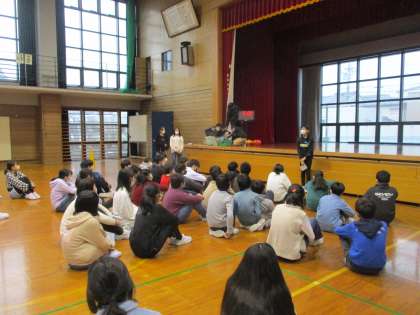 学年でお楽しみ会をしました。各クラスから実行委員を選出し、ゲームを体育館で行いました。「しっぽとり」「どん、じゃんけん」など、学年入り交じって楽しみました。