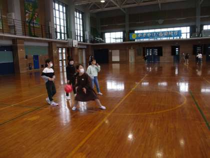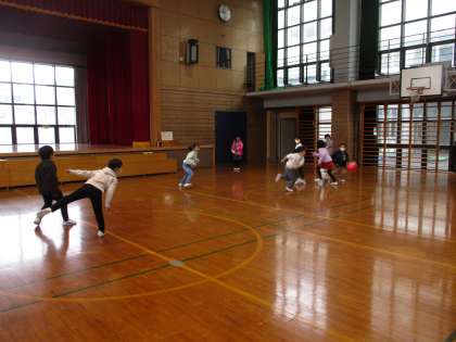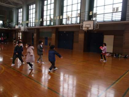 2学期最後のお楽しみ集会をしました。前半は、体育館で色団対抗ドッジボールをしました。当てられないように、うまくボールをかわし楽しみました。