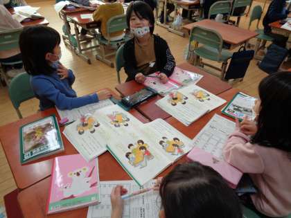 友達の「好きなお話(本)」について考えながら話を聞き、質問や感想を言ったり、詳しく答えたりする学習をしました。1学期に行った「ききたいな、ともだちのはなし」の学習の時よりも、やりとりがとても上手になり、大きな成長を感じました。