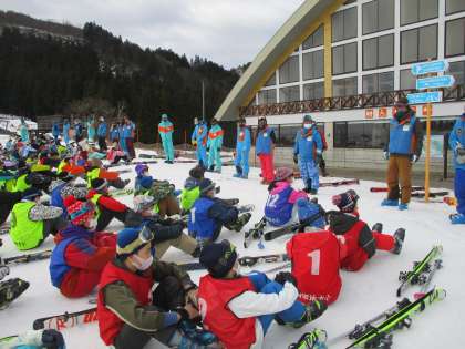 立山山麓スキー場で、スキー学習を行いました。天候にも恵まれ、気持ちのよい1日となりました。開講式で、インストラクターの先生に元気よく挨拶をし、午前の活動をスタートさせました。