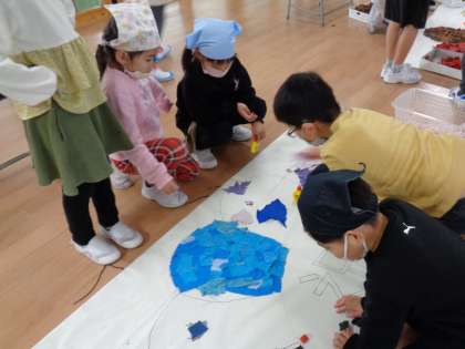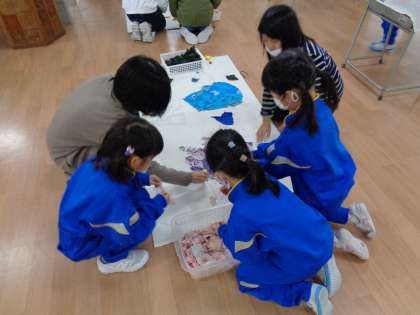 4年生の総合の学習で、NSDGs委員会が企画した西田地方SDGsウィークイベントに1年生も参加しました。クイズラリーや射的などのNSDGsランド、モザイクアートなどに挑戦しました。参加した子供たちは、クイズに全問正解して喜んだり、いらなくなった布でできたアートに感動したりしていました。