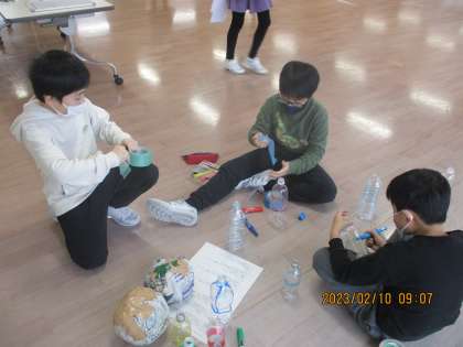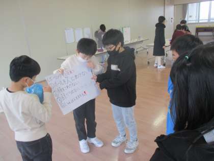 ペットボトルのピンと新聞紙のボールで行う「エコボーリングコーナー」を開きました。どちらも軽い材料なので、低学年の子供たちも軽々とピンを倒し、喜ぶ様子が見られました。長い行列ができる場面もありましたが、担当の4年生は落ち着いて、手際よく説明や準備を行うことでスムーズに進行することができました。