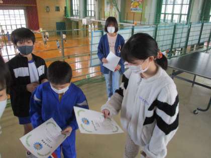 今年の活動は、ペア対戦あり、シングル戦ありとたくさんの試合を行いました。それぞれの賞状をもらい、みんなで写真撮影をしました。