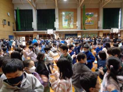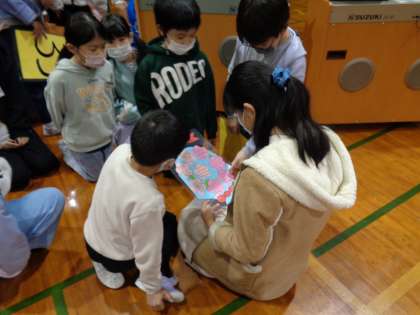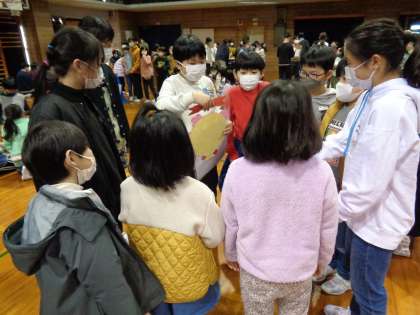 縦割り班に分かれて、お世話になった6年生にメッセージカードを渡しました。縦割り清掃で掃除の仕方を教えてもらったり、縦割りふれあいタイムで一緒に遊んだりしたことを思い出しながら「ありがとう」の気持ちを伝えました。その後は、6年生からのお返しで、全校一斉にアルゴリズム体操をしました。残り少ない6年生との時間を楽しく過ごし、また一つ思い出が増えました。