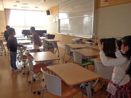 新1年生を迎えるために、してあげたらよいと思うことを話し合って、準備を始めています。まずは、学校にある部屋を紹介するためのマップづくり。グループで協力し合いながら、クローム・ブックで写真撮影をしたり、説明したり注意したりしたらよいと思うことを書き出したりしました。