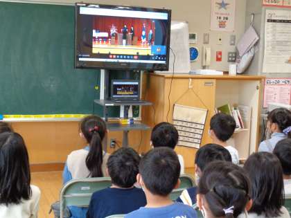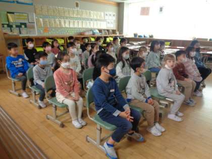 卒業式にミートで参加しました。お世話になった6年生さんに感謝の気持ちを伝えるために、大きな拍手をしたり元気な声で歌を歌ったりしました。式後のお見送りでは、縦割り班で一緒だった6年生に手を振ったり「卒業おめでとうございます」と声をかけたりして、別れを惜しみました。