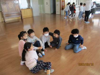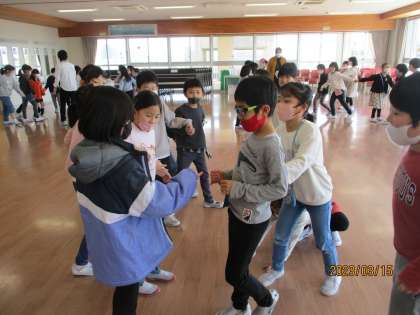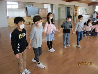 2年生も残りわずかとなりました。学年で仲良く活動をする機会が増えています。今日は、花いちもんめをして楽しみました。