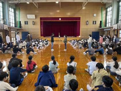 児童会引き継ぎ式では、委員会と縦割り班について6年生からバトンを受け取り、来年度へ向けて決意の言葉を述べました。
