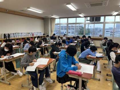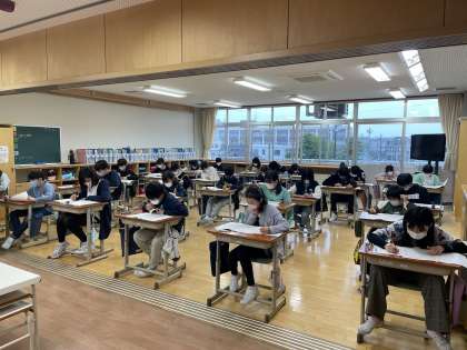1日目は、国語と理科のテストを受けました。2日目は、算数と社会です。どの児童も真剣な態度で、もてる力を十分に発揮しようと頑張っていました。